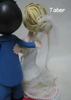 han recibido como regalo de bodas unos muñecos personalizados. Ella lleva un